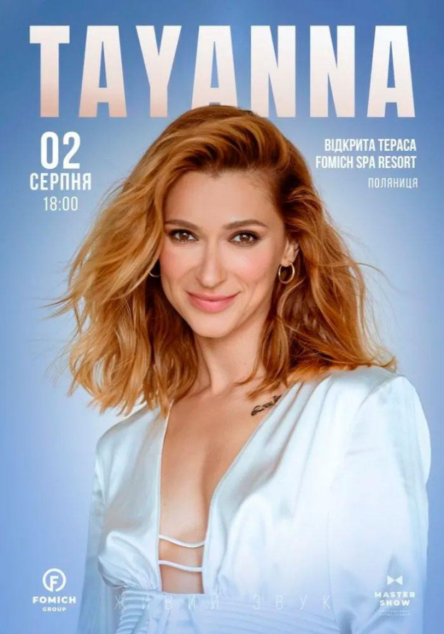 On August 2, the atmosphere of romance and lightness will reign in FOMICH SPA RESORT, because on this day the unsurpassed TAYANNA will perform. A deep and diverse musical evening awaits you, because TAYANNA's work is multifaceted. Everyone will be able to get a portion of pleasant impressions and live their own special moments. Experience TAYANNA's music live, enjoy an open-air concert in the incredible Carpathians!