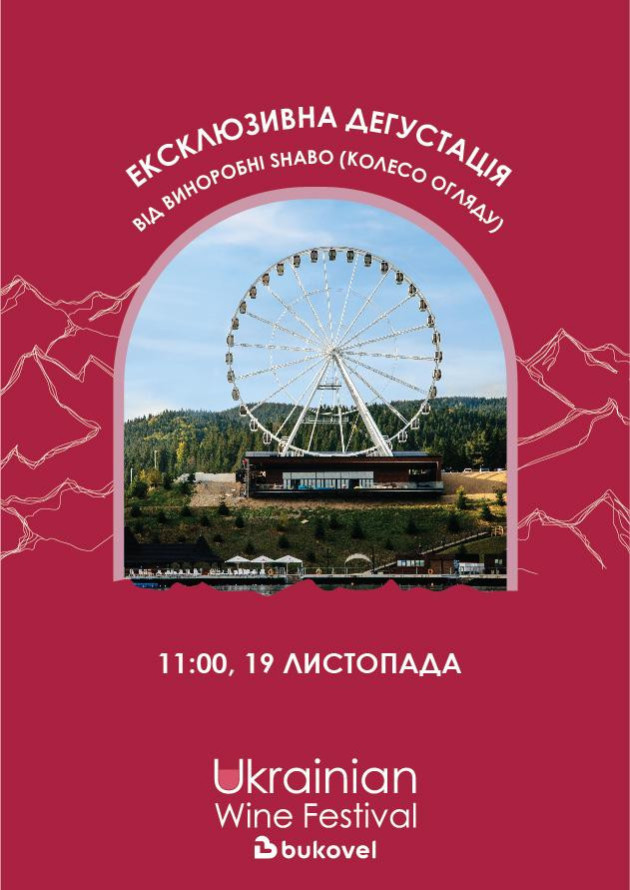 19 листопада, 11:00 відбудеться ексклюзивна дегустація в оглядовому колесі від виноробні SHABO.